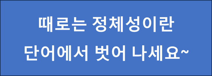 정체성이란 단어는 어떻게 보면 좋은 말이고 어떻게 보면 개인으로서 합리화 하기에 좋은 단어라는 생각을 해봅니다.